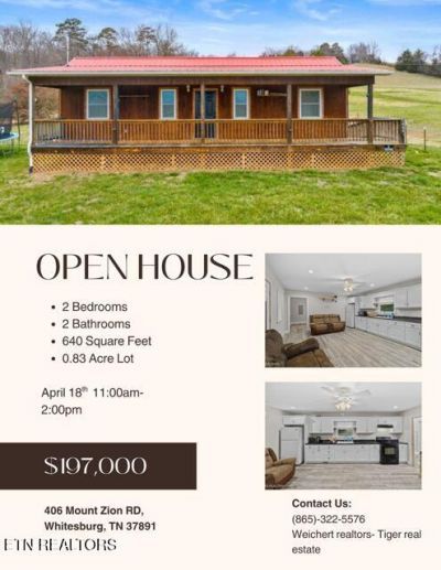 This single family home located at 406 Mount Zion Rd, Whitesburg, TN 37891 is currently listed for sale with an asking price of $197,000. This property has 2 bedrooms and 2 full baths with 640 sq. ft. Mount Zion Rd is located in the Charles K Horner subdivision. Search Charles K Horner real estate on hillary.fergusonrealtors.com today.